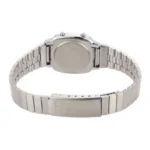 درون این ساعت موتور کوارتز دقیق کار میکند و بند استیل ضد زنگ با رنگ نقرهای هماهنگی کامل با قاب ایجاد میکند. قفل پیوسته سه تکه فشاری کار با یک دست راحت را فراهم میکند و دوام زیادی دارد.