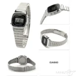 ساعت مچی کلاسیک زنانه کاسیو مدل LA670WD-1DFساعت مچی LA670WD-1DF از برند کاسیو با طراحی کلاسیک و زنانه عرضه میشود. بدنه از رزین با قاب چهار گوش نقرهای، صفحه ترکیبی مشکی و طوسی و شیشه ساده دارد که ظاهری شیک و همیشه به روز میدهد. این مدل ساخت ژاپن است و جایگاه معتبر کاسیو را در میان ساعتهای مچی به هر مناسبتی میرساند.