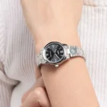 ویژگیهای فنی هم کاربری را آسان میکند: موتور کوارتز ژاپنی با دقت بالا، شیشه معدنی سخت و بند استیل ضد زنگ که دوام طولانی مدت را تضمین میکند. گارانتی دو ساله بینالمللی و قفل پیوسته سه تکه از نظر کاربری را ساده و مطمئن میکند. جنس بدنه آلیاژ، رنگ قاب نقرهای و رنگ بند نقرهای تکمیلکننده ظاهری لوکس است.
