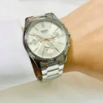 این مدل برای استفاده روزمره و جلسات کاری طراحی شده است و با گارانتی بینالمللی دو ساله ارائه میشود تا از اصالت و پشتیبانی مطمئن باشید. بند نقرهای استیل و قفل سهتکه کاربری ساده و ایمنی بالا را فراهم میکند. کشور سازنده ژاپن نشانی از کیفیت ساخت است.