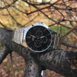 قاب استیل ضد زنگ با رنگ نقرهای جذاب است و با بند استیل ضد زنگ کامل میشود تا دوام فوق العادهای ارائه کند. صفحه مشکی با خطوط ساده و واضح زمان را به روشی خوانا نشان میدهد. شیشه کریستال معدنی در برابر خراش و ضربههای روزمره مقاومت خوبی دارد و با قاب گرد کلاسیک هماهنگی بینظیری ایجاد میکند. قفل کلیپسی ضامن دار نیز فرآیند باز و بسته شدن را امن و سریع میکند.