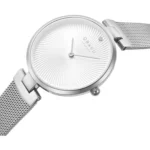ساعت مچی کلاسیک زنانه اباکو مدل V256LXCIMCساعت مچی اباکو مدل V256LXCIMC با طراحی کلاسیک مناسب بانوان است که از بدنه استیل مقاوم با قاب گرد نقرهای و صفحهای همرنگ بهره میبرد. موتور کوارتز تک زمانه دقت بالایی را فراهم میکند و با سبک کلاسیک، گزینهای مناسب برای استفاده روزمره تا مجالس رسمی است. بند استیل حصیری با رنگ نقرهای، ظاهر را تکمیل میکند و حس لاکچری را به دست میدهد.